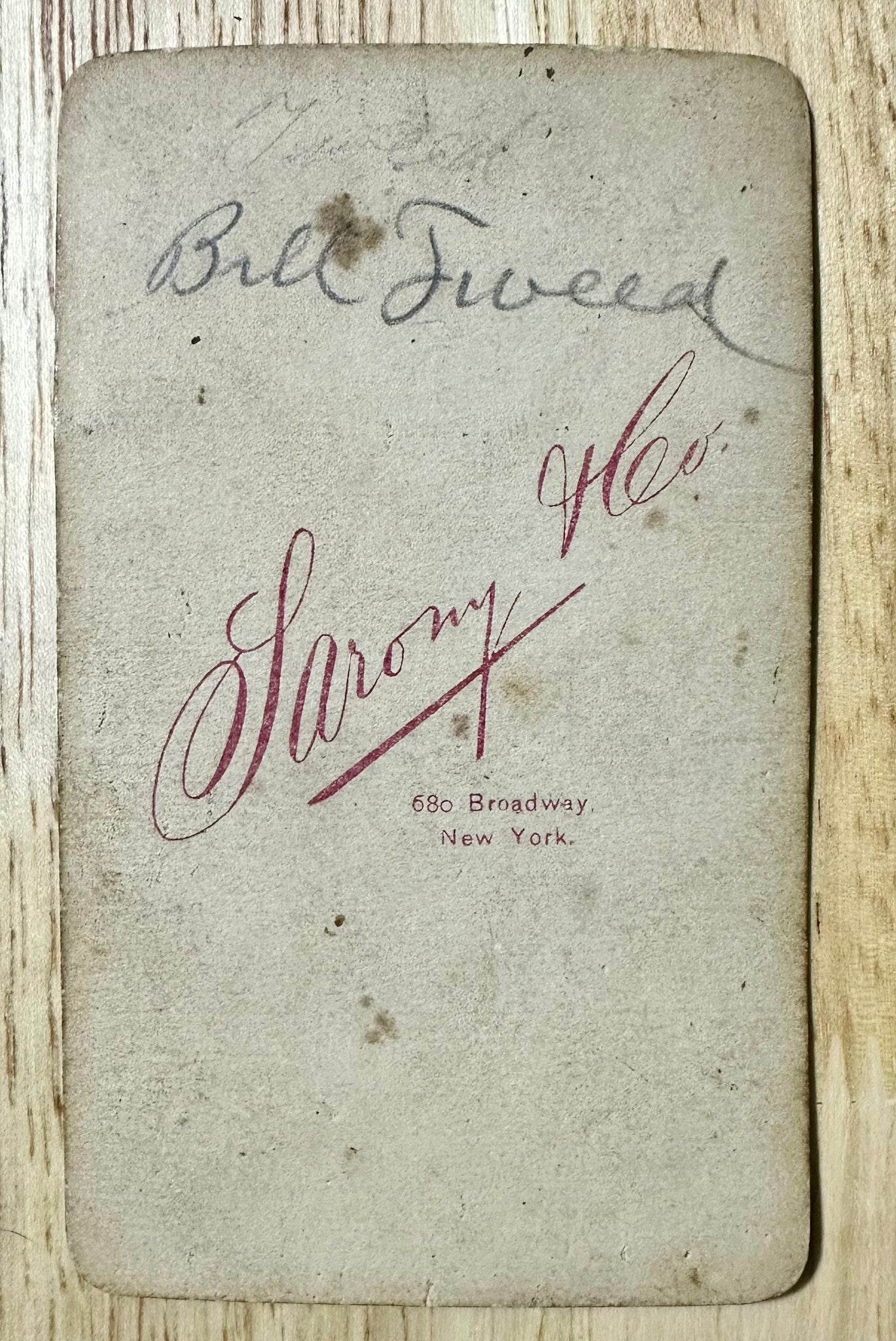Rare CDV of William Magear "Boss" Tweed. This is a hard to find pose of him and was taken by Sarony, New York City. Image is 4" x 2.5" and in very good antique condition overall. Shipping: Ground photo mailer. Boxed Priority Mail also available.