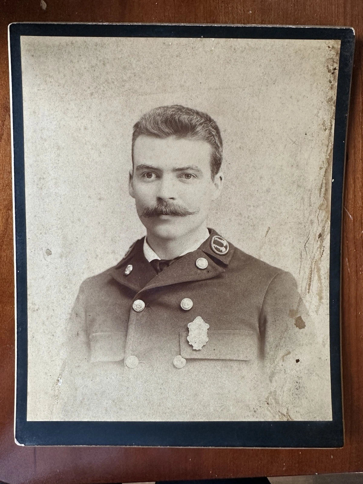 HUGE 10x8 Fireman in Dress Uniform 1890s IMPERIAL MOUNT Rare Antique Photo 1800s