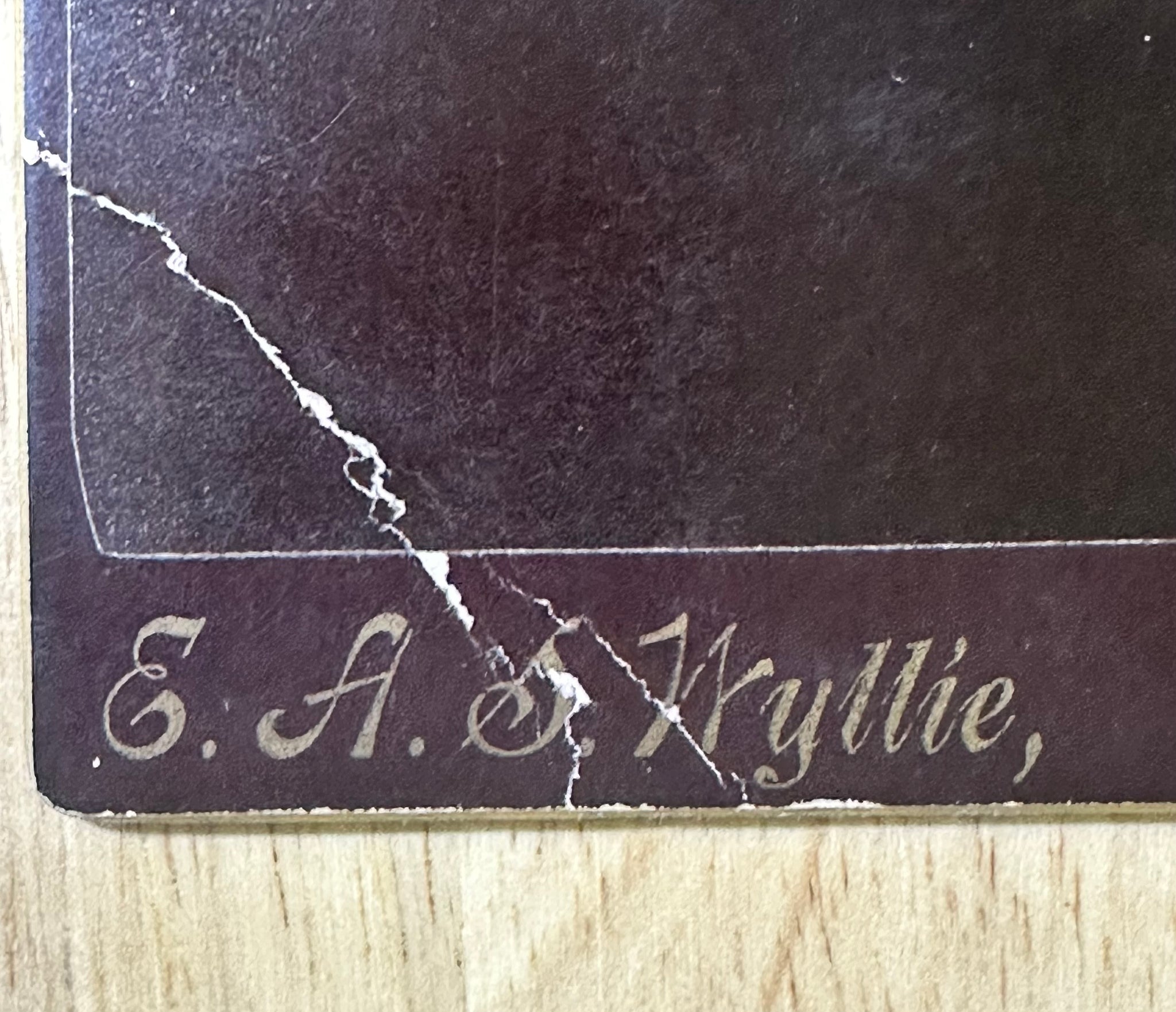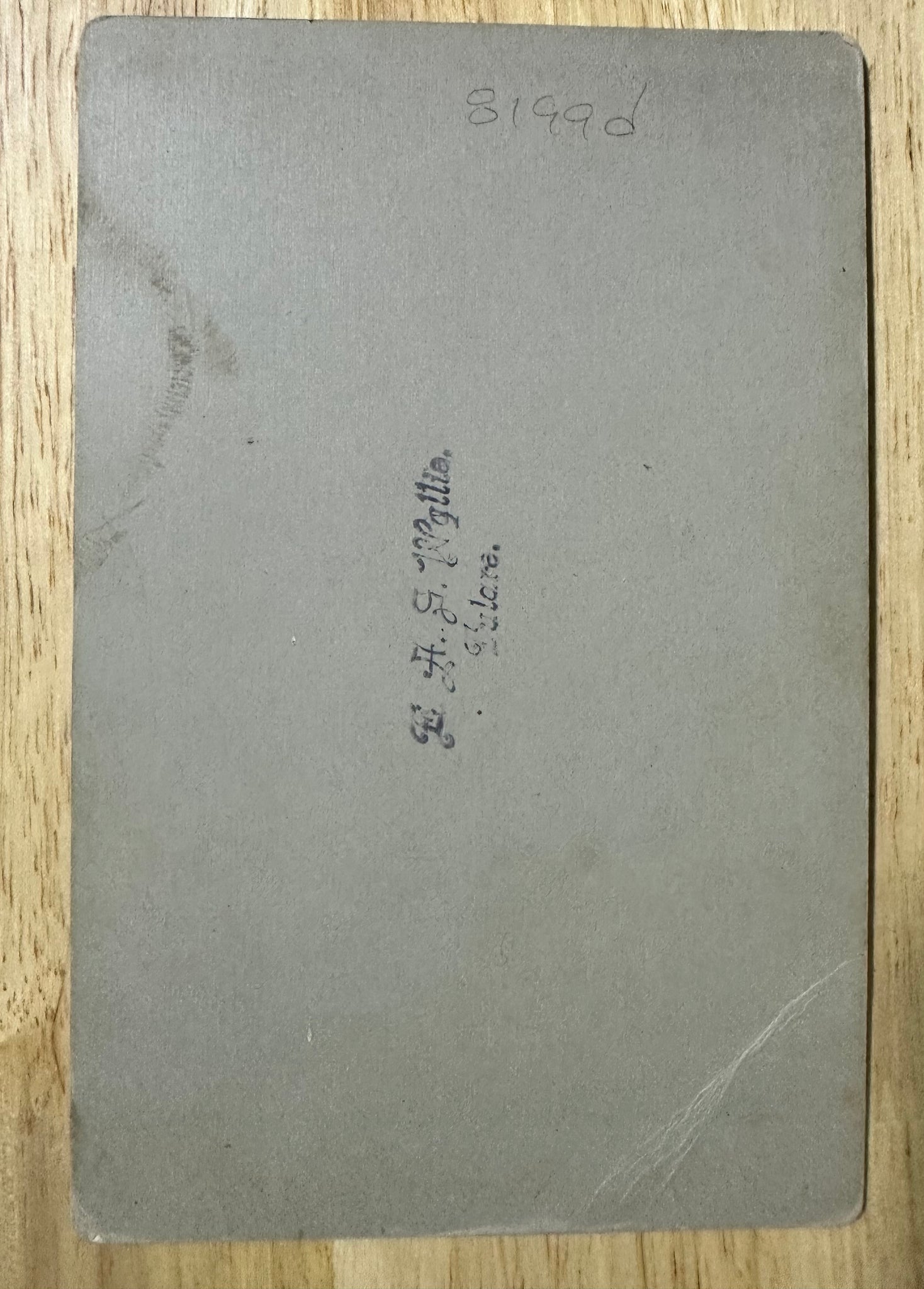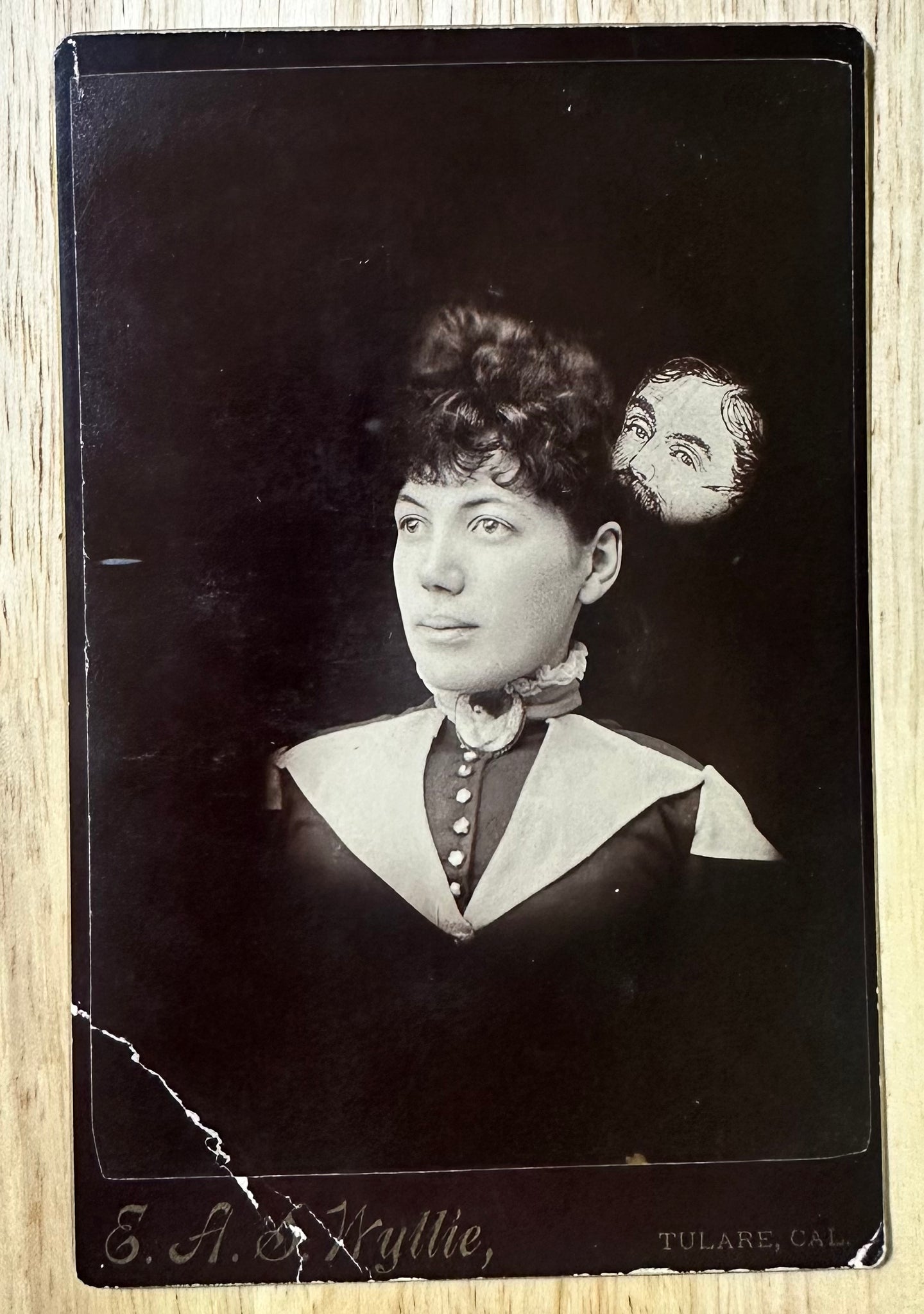 Original late-1880s, early-1890s cabinet card. Very rare spirit photograph from this photographer, Wyllie, who was in Tulare, California... have never seen another one of these by him. 6.5" x 4.25". Crease, otherwise in VG antique condition. The crease isn't too heavy, the mount is still firm. Boxed shipping. |