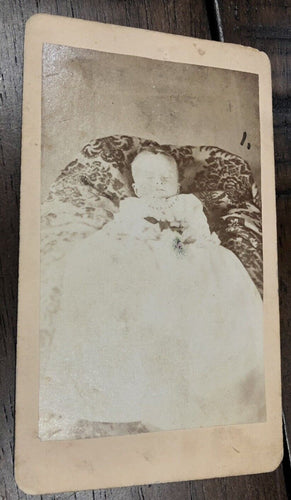 CDV Photo, Post Mortem Baby / Infant Holding Flowers, Peoria Illinois circa 1870