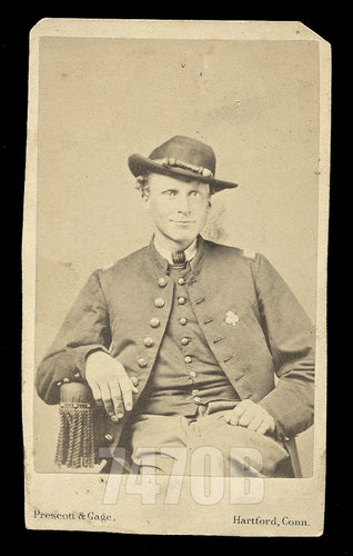 ORIGINAL CDV PHOTO CIVIL WAR SOLDIER WEARING CORPS BADGE + 1860S TAX STAMP