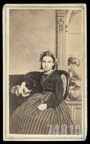 1860s CDV Girl with Sleeping Cat / Kitten Springfield Illinois