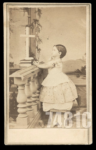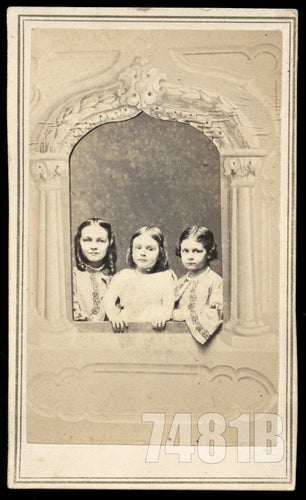 Bogardus CDV of Three Cute Little Girls Posing in Prop Window 1860s