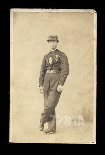 Civil War Era Ice Skater Wearing Medal Frozen Lake Painted Backdrop 1860s Photo