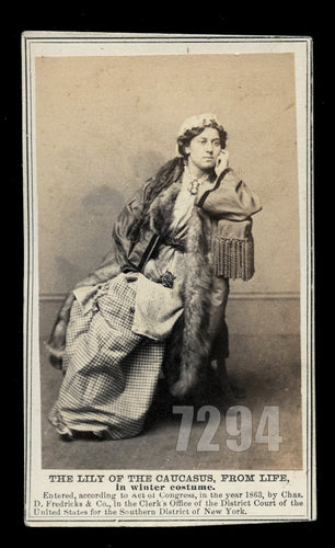 RARE 1860s CDV, "LILY OF THE CAUCASUS" TAKEN BY C.D. FREDERICKS FOR LECTURE TOUR