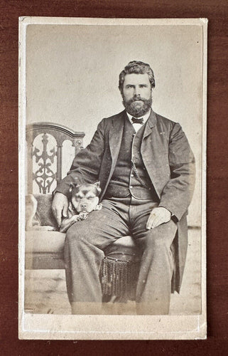 Handsome Bearded Man Dog In Lap New Orleans Photographer 1860s CDV Photo