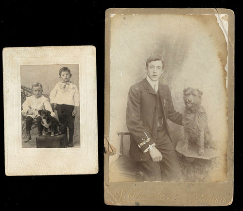 lot of 2 antique photos kids with dogs 1800s cabinet card vtg