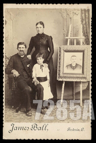 Family Posing with Memorial Portrait by JAMES BALL Ohio Photographer Mourning