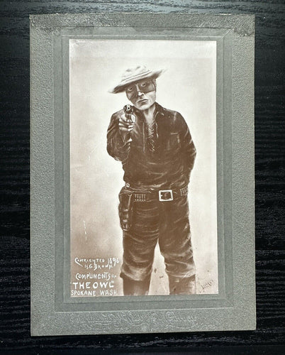 VERY RARE GOLD RUSH OWL SALOON ADVERTISING WITH MASKED OUTLAW AIMING GUN MINING