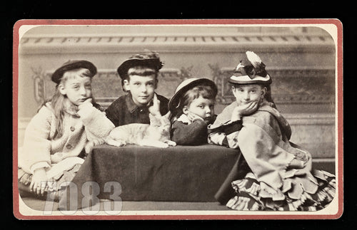 Excellent! Little Girls & Cat Massachusetts 1800s Antique CDV Photo Kitten Cute