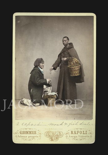 RARE 1870S PHOTO OCCUPATIONAL CAPUCHIN MONK & FISH SELLER GIORGIO SOMMER ITALY