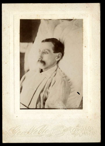 Deathbed Premortem Photo of ID'd Michigan Man 1895 Post Mortem Int Obituary