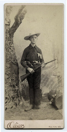 Excellent Antique "Corona" Photo 1890s Young Cowboy Rifle Guns Fulton Missouri