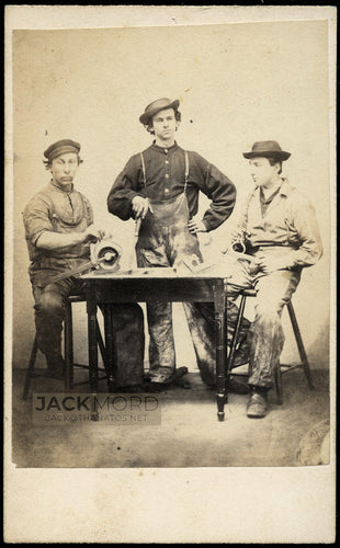 1860s Occupational CDV Men at Workbench with Tools Civil War Tax Stamp