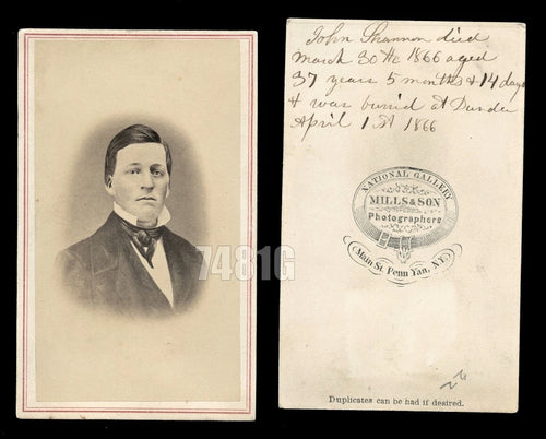 Civil War Soldier Vet John Shannon 14th NY Vols. Killed by Kick From Horse CDV
