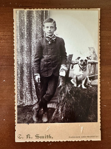 Antique Cabinet Card - Boy Posing With His Cute Pug Dog Antique Photo Vintage