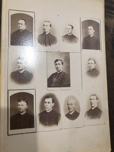 unusual cabinet card of priests pinned to board - photographer copy not composite