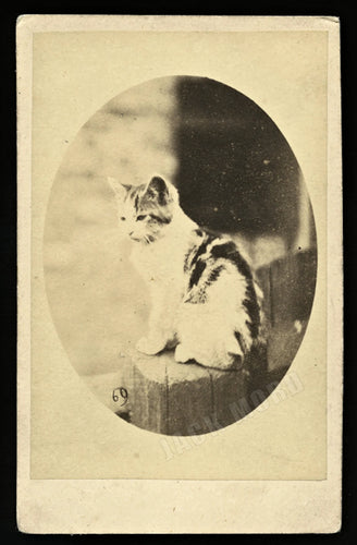 1860s CDV Photo of a Cute Cat Sitting on a Post / London England Photographer