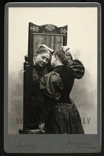 Antique Photo Smiling Woman in Mirror 1890s Portland Oregon