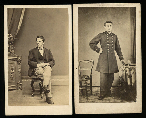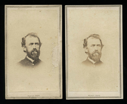 2 CDVs New York Civil War Soldier MEADE BROS Blind Stamp 1860s Photo