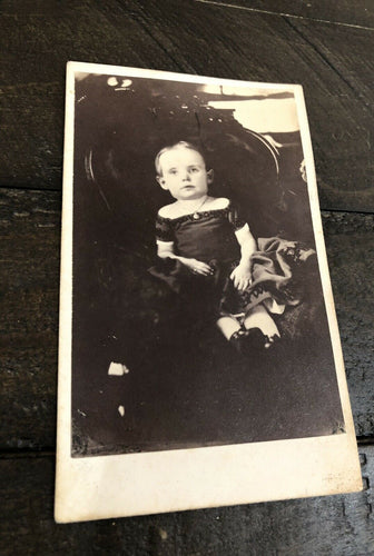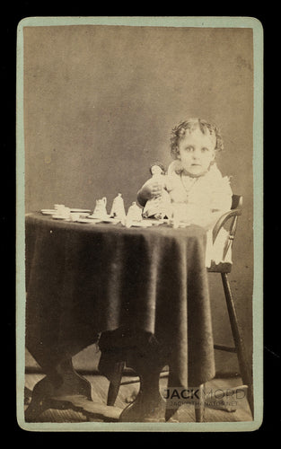 1870s CDV Little Girl Having Tea Party Holding Doll in Lap, Monticello, Illinois