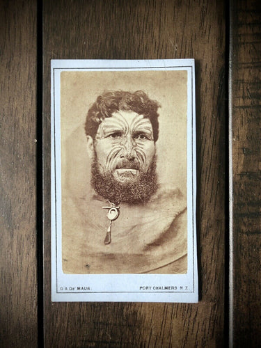 RARE Antique Photo Maori Man w Facial Tattoos New Zealand Photographer De Maus