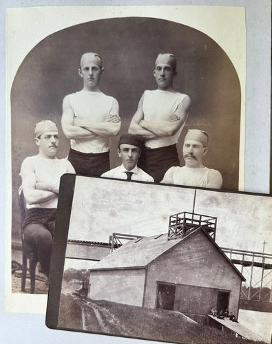 Bowdoin College Rowing Team Albumen Photo + Boathouse Cabinet Card Maine 1800s