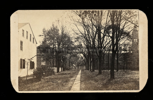 1860s Outdoor CDV Sidewalk Through Trees / Buildings / Houses - School Campus?