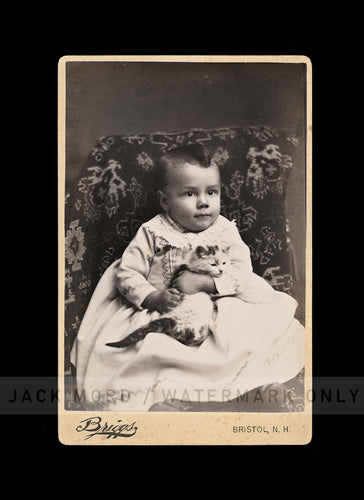 1880s 1890s Photo Little Boy Holding Cute Kitten or Cat / Bristol New Hampshire
