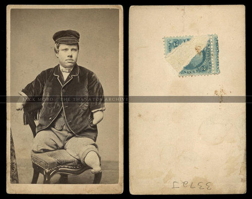 Texas Jack Sideshow Boy Very Rare Or One Of A Kind CDV Photo 1860s Tax Stamp