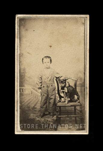 1860s CDV Cute Little Boy & Pet Dog on Leash / Indiana