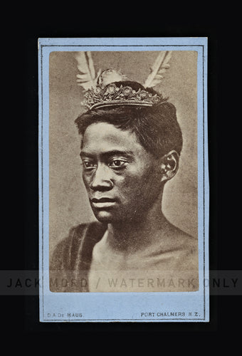 RARE Antique 1800s Photo Young Maori New Zealand Photographer De Maus / Tattoos