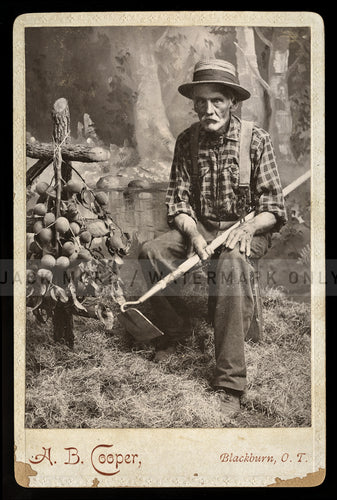 Occupational Photo - 1890s Blackburn Oklahoma Territory Farmer with Garden Hoe