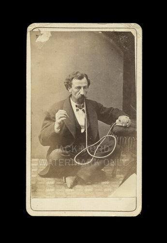 1860s CDV Man & His Motion Blurred / Face Doubled DOG Smoking Cigar!