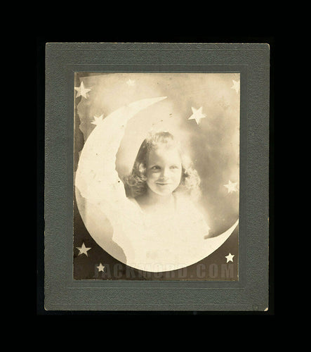 Antique Cabinet Photo Cute ID'd Girl - Wonderful Moon and Stars Graphic Unusual