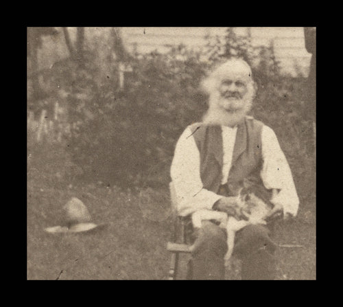 antique vintage 1800s outdoor cdv photo old man holding cat in front of house