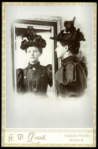 Beautiful Girl MYRTLE WOOLFOLK Doubled in Mirror Artistic 1890s Photo Indiana
