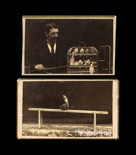 Rare Sideshow Circus CDV Photos - Trained Birds & Trainer by Eisenmann