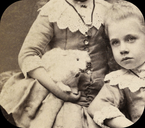 1800s Photo Chicago Girls Sisters Twins & Mystery Beast Pet Cat Rabbit Bird Toy?