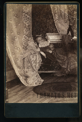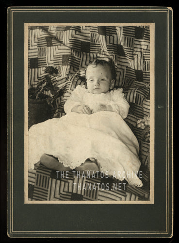 Post Mortem Child, Potted Flowers, Quilt Backdrop - Early 1900s