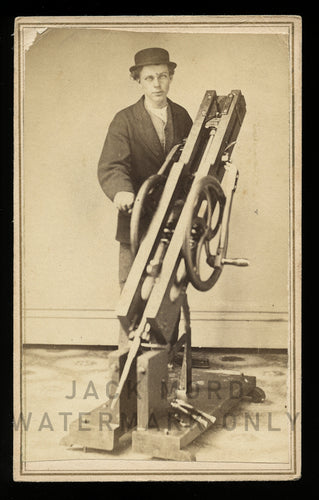 Rare 1860s c.1870 CDV Photo Man Posing with Huge Rock Drill Occupational