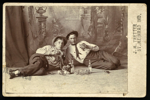 Antique Photo Men Friends on Floor Drinking Beer Cigars & Guns Indiana 1890s Gay