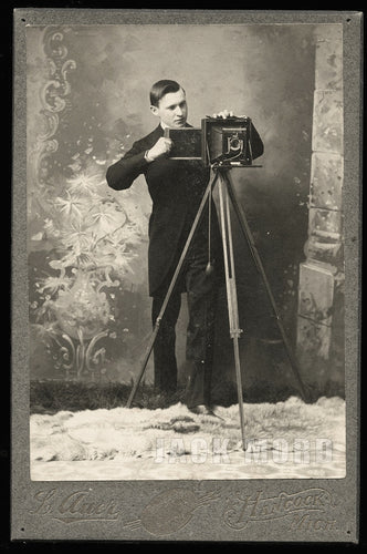 Excellent Occupational Photo Michigan Photographer Louis Auer With Camera 1890s