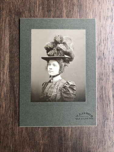 Antique Photo Dated 1898 Illinois Woman in Gigantic Hat - Victorian Era Fashion