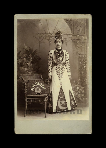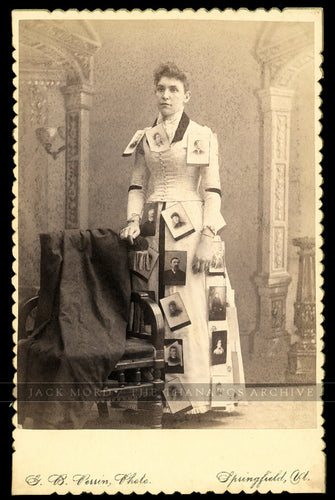 Photographer Advertising Woman w Cabinet Cards on Dress Banner Lady Rare Photo