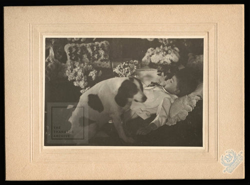 Very Special Post Mortem Photo Little Boy Guarded by his Pet Dog Wisconsin c1905
