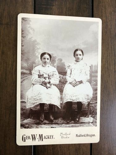 Antique Photo Oregon Sisters Holding Cats Kittens Doll Photographer Neg #1 1800s