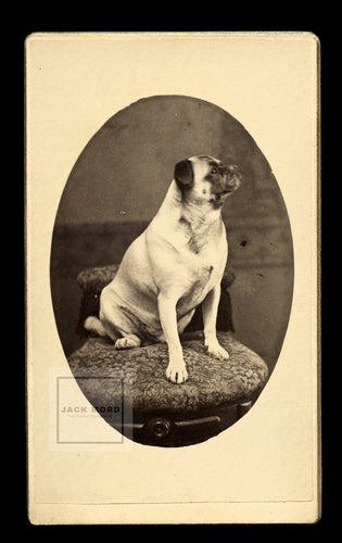 Antique 1870s CDV Photo - Pug Posed Alone on Table - Good Dog