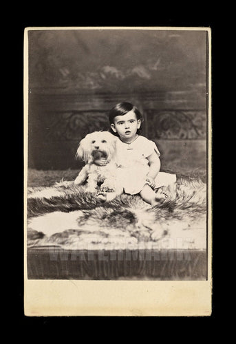 1880s Cabinet Card Photo Long Hair Barefoot Boy with Little Dog Arizona Terr?