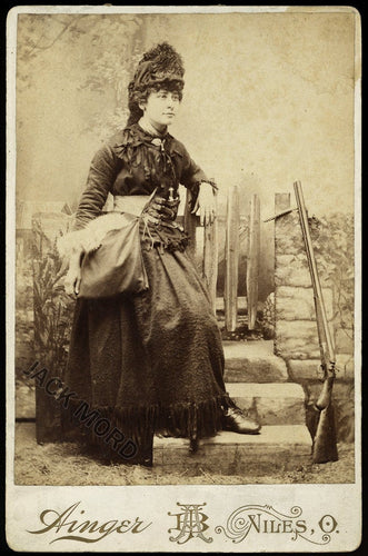 Antique Cabinet Photo Woman with Shotgun & Knife? Ohio Hunter